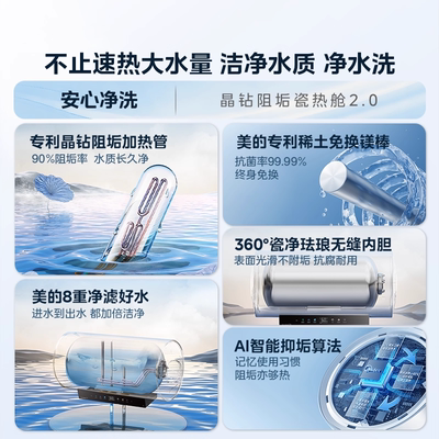 【国补到手1119.2】美的JE8pro电热水器,一级能效,强效除菌。晶钻净垢加热管,加热更稳定,水质长久净。