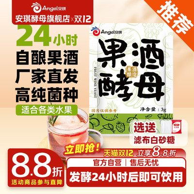 自酿葡萄佳酿,首.选安琪发酵。水果酒用,成品香气浓郁诱人。独特曲菌种,助您酒香四溢。3g速溶好果酒,家用自酿更方便。