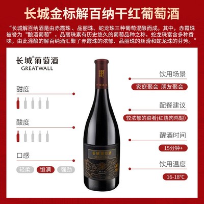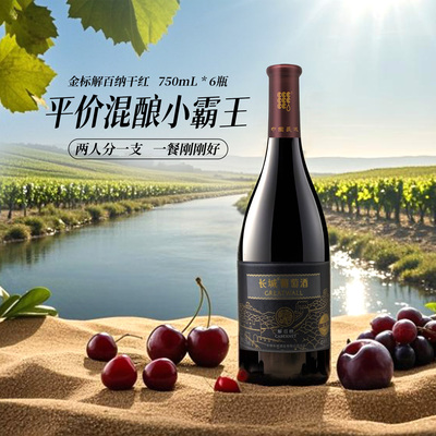 【立减21元,单品直降12元。】金标解百纳干红葡萄酒国产红酒6瓶正品,超赞
