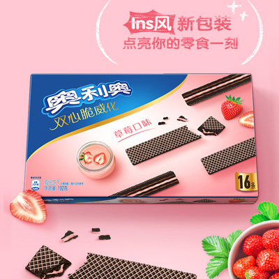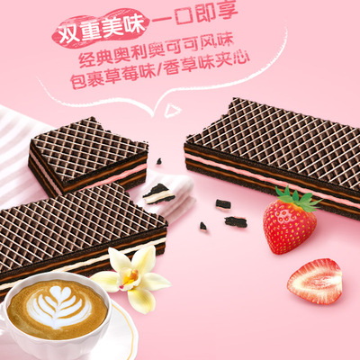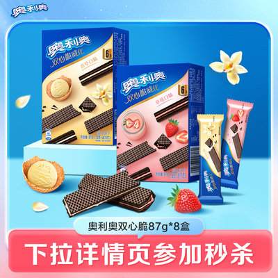 下拉详情页下单到手26.9,奥利奥双心脆焕新上市威化夹心香草草莓味饼干零食小包装8盒装