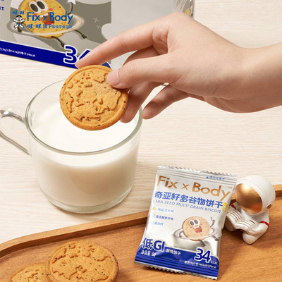 旺旺FixXBody奇亚籽多谷物饼干低GI粗粮代餐,膳食纤维低GI食品,办公室休闲零食好吃又便宜!
