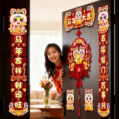 【商d!】马年磁吸对联,喜庆优惠。春联添喜气,红火好价格。福字入户门贴,美观又实用。醒狮装饰,年味十足!