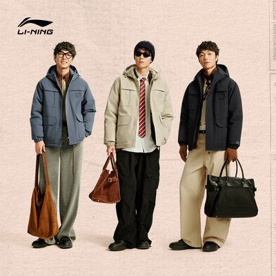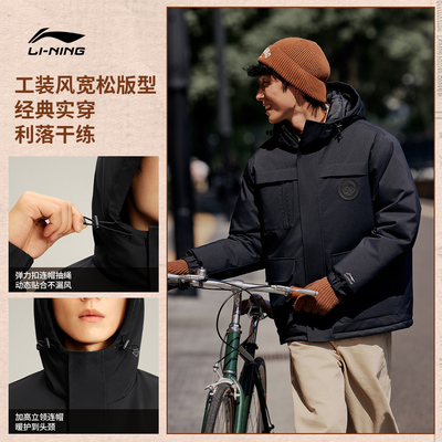 李宁航天动态保暖羽绒服男冬季2025新款连帽衣服短款工装运动外套!!!