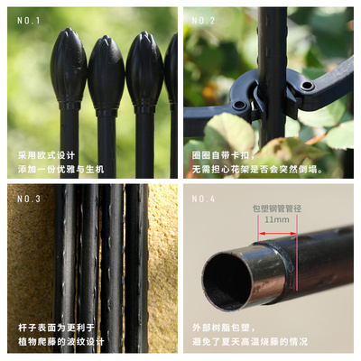 绿意盎然,铁艺花架到货,植物防护好,结实稳定支撑,室内外通用,造型迷人更稳固。铁艺花架,美饰生活空间,月季藤蔓,从此无惧倒塌