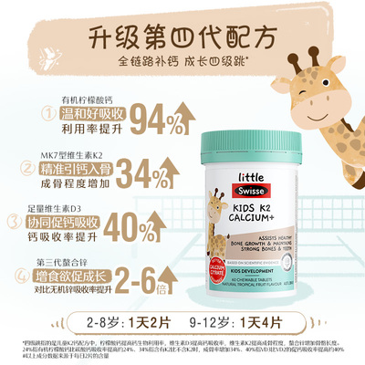 Swisse斯维诗儿童液体钙镁锌k2柠檬酸钙片,成长钙6到12岁咀嚼片