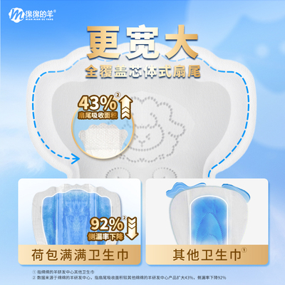 】绵绵羊荷包设计,宽芯大扇尾,加长加宽更贴心,轻薄透气不闷热,日夜安心使用,呵护每一刻!