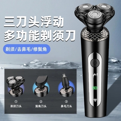 多功能浮动剃须刀,8D浮动贴面剃须。一小时快充,持久续航。刀头刀架双浮动,不卡须。剃须·修鬓角·去鼻毛,一机多用,多效理容。