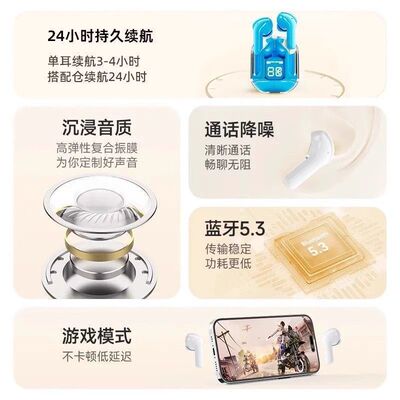 支持双设备连接,高清音质,清晰通话,真不入耳设计,佩戴舒适无负担。超长续航达36小时,满足运动、日常多场景使用!