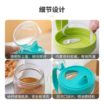 【茶花】玻璃防漏油罐壶,选钠钙玻璃材质,回油孔设计,回流节油,鹰嘴壶口,不挂滴油,加厚玻璃不易损坏,使用安心,大壶口,添加油顺畅,清洗便捷,多种用途~