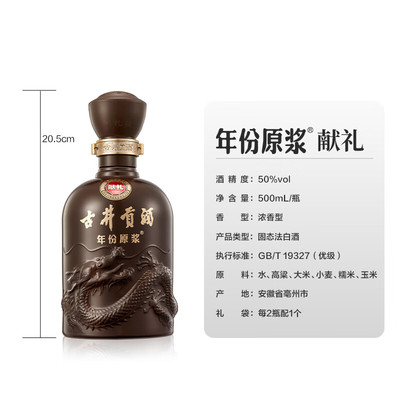 古井贡年份原浆第六代献礼版,50度浓香型纯粮白酒,下单两瓶即送一根人参茶*1盒,适合宴请送礼。品质上乘,口感醇厚,彰显尊贵!