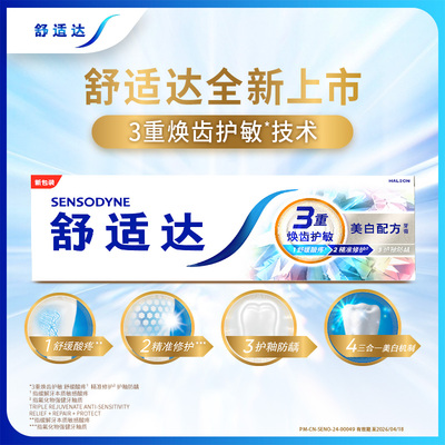 【商品右上角...进淘金币大额抵扣后到手更划算,再赠护理牙膏30g*1】舒适达安心美白牙膏100g*3支套装,正品保证,品质优异,三重美白,专为敏感牙设计,三重美白机制,去黄去牙渍烟渍,重现牙齿亮白【赠运费险】