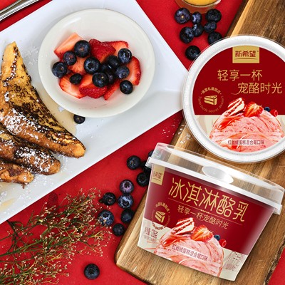 新希望低温酸奶冰淇淋酪乳香草味甜橙味红丝绒蛋糕发酵乳128g/杯,
