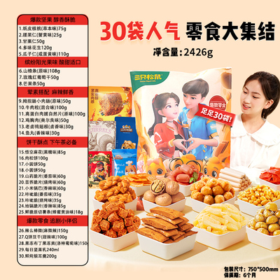 【88vip立减3.95+下拉详情页淘金币频道抵扣8.38,超4.6斤零食到手66.7元】三只松鼠霸王零食袋年货大礼包,内含多种休闲小吃,解馋又实惠!送女友送亲友都超有面,年货必备,拍2件享优惠价!