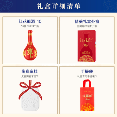 【天猫app进入补贴173元,需要店铺内领取会员20元,美食券领取减40元,券后到手1511元,凑2000-200消费券后到手1496元,抢前199名送100ml六瓶】聚会宴请好酒——郎酒红花郎酒10!53度酱香白酒,酒体醇厚,香气浓郁,适合节日送礼和家宴饮用,品质保障,送礼自用都合适!