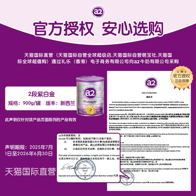 拍两件1301元,领取品类券到手1181元含税费,a2奶粉二段新紫白金婴幼儿2段900g*6罐,赠品:早餐机、投影灯、购物金60元,三选一。