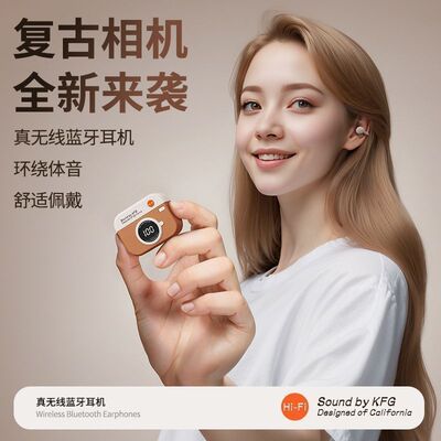 复古相机全新来袭,真无线蓝牙耳机环绕体音:舒适佩戴,电量一看就明了,大屏数显