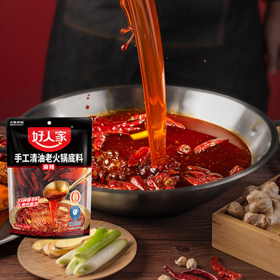 礼金+金币大额抵扣到手20.36元左右!好人家清油火锅底料500g!非遗工艺熬制,0反式脂肪酸,麻辣鲜香不腻口,家庭聚餐/小馆商用都安心~清油配方,比牛油更清爽,涮菜吸味不糊锅,性价比之选!