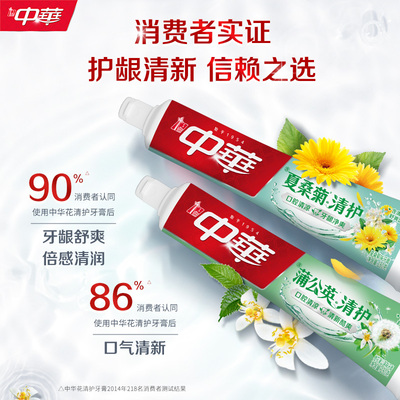 【官方立减2.4元,淘金币抵扣0.39元。】中华花清护牙膏护龈清润清新口气清凉固齿,传承《本草纲目》护龈精粹,现代活性酵素科技,国家中药牙膏发明专利