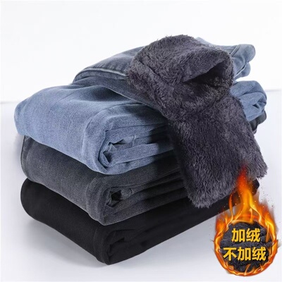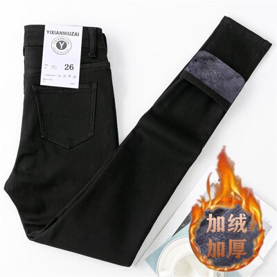 高腰牛仔裤女加绒加厚冬季