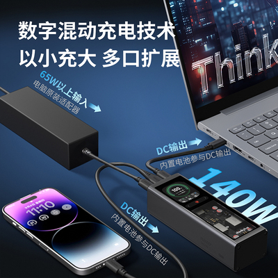 【立减10元,88vip红包减25元,到手224元】thinkplus锋行者140w移动电源,数字智慧大屏安全可视。数字混动充电技术,以小充大多口扩展。多协议快充,千种机型全部搞定。