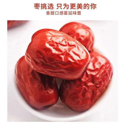 9.9元!新疆和田大枣特大红枣零食大枣!新疆“骏枣,精挑细选个大饱满。新鲜采摘不早摘、不催熟。枣皮薄不涩口,果肉饱满紧实,枣香浓郁。