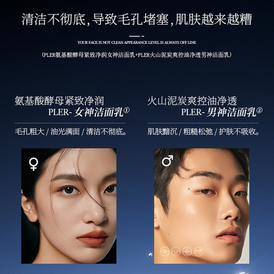 【PLER】火山泥炭男款洁面乳3重控油净澈成分+7重植物精粹+多重保湿修护【PLER】氨基酸酵母女款洁面乳3重养护精油+4重抗氧成分+6重植物精粹✅深层洁净✅抵御污染✅强韧肌肤有质检安全报告!质量与功效认证!