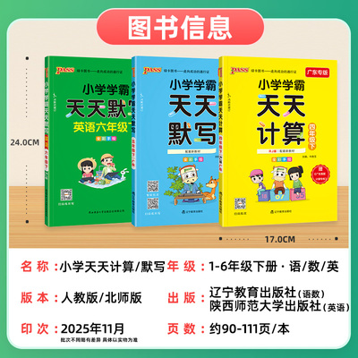 2026秋小学学霸天天计算默写!人教版同步练习册,语文数学英语全覆盖,广东专版精准匹配课堂进度~每日一练提成绩,重点知识全掌握,家长老师都推荐的高效辅导书!