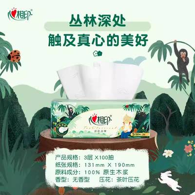 秒杀5.01元!【恒安旗舰店】心相印丛林深处联名抽纸3层加厚100抽3包试用好价!