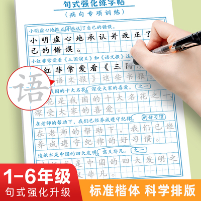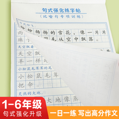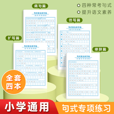 【全4册】句式强化练字帖,每天10分钟,专为小学生设计!修辞篇、扩写仿写、病句积累,人教版配套,好词好句摘抄,助力语文提升!