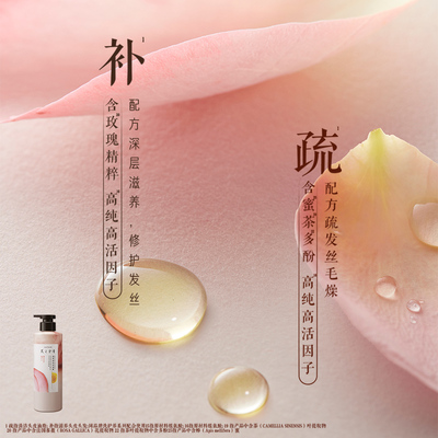 天然植萃精油配方,深层滋养修护受损发质,洗护合一更柔顺!玫瑰精华沁润头皮,持久留香,告别干枯毛躁,秀发焕发自然光泽~