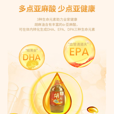 贺万家胡麻油醇香亚麻籽油,严选优质亚麻籽原料,采用低温冷榨工艺,保留天然α-亚麻酸高达55%以上,无添加、无防腐,每一滴都凝聚自然醇香,为儿童成长注入纯净能量。