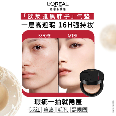 限定款圣诞礼盒来袭!欧莱雅黑胖子气垫高遮瑕,痘印色斑一拍隐形,薄透不假面,送替换装+面膜+礼袋,叠加优惠低至157元,节日送礼自用都超值!
