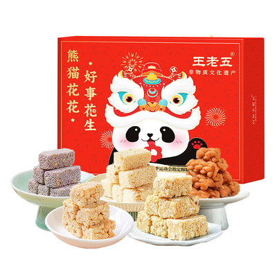 【熊猫花花766G券后29.9,鸿运当头1028G券后34.9】央·视电视广告都看过吧!大牌王老五【老老实实在做酥糖】,还被评为“非物质文化遗产,花生酥、小麻花、小米酥、黑芝麻酥等零食,烫金包装很喜庆,送人很合适【日期新鲜】