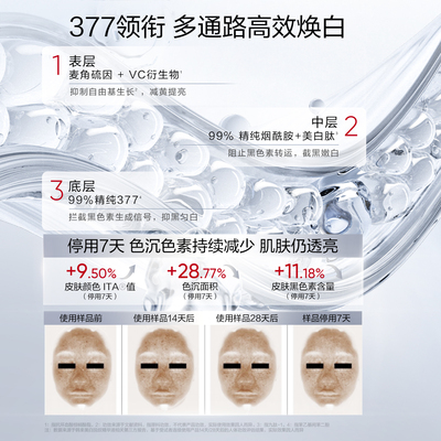 韩束377亮白棒红蛮腰闪充环肽次抛精华液淡纹抗皱美白补水组合装。