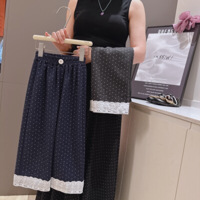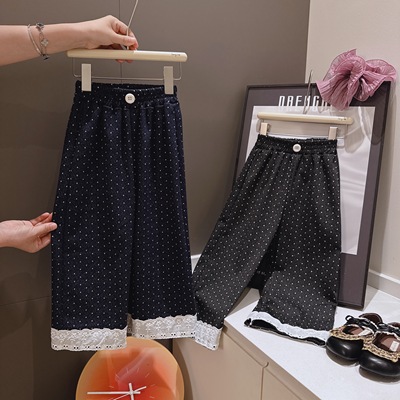 女童春秋款波点阔腿裤,百搭休闲设计,花边点缀更显可爱时尚,适合中大童穿着,舒适透气,轻松打造甜美造型!
