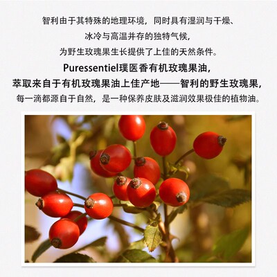 Puressentiel璞医有机玫瑰果油,50ml大容量,天然有机成分,舒缓滋养,以油养肤,深层补水,适合各种肤质,打造水润透亮肌肤!