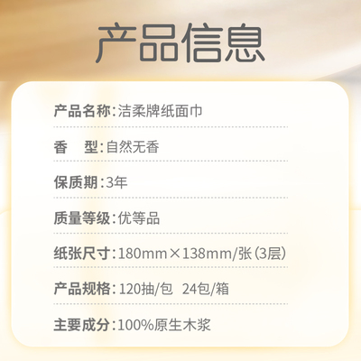 【百亿45.9+3元福袋+39-6超补券+0.45淘礼金,到手价36.45元】洁柔家用大包抽纸,3层加厚,120抽/包,整箱24包,可湿水面巾纸,母婴适用!