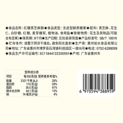 【拍3件】如水妈妈酥红糖黑芝麻120g*3!富含多种营养,味道甜而不腻,有妈妈的味道,健康好吃又营养,老少皆宜~【赠运费险】
