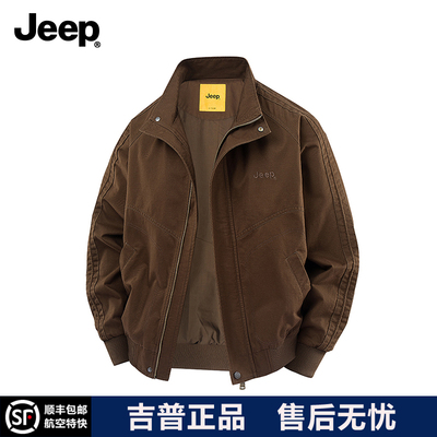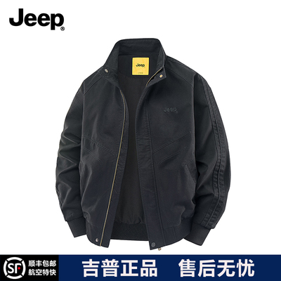 JEEP/吉普夹克男秋冬季加绒加厚上衣宽松休闲纯棉立领工装外套男。