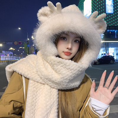 2025冬季爆款!可爱毛绒连帽围脖,护耳保暖超贴心,软萌设计显脸小,拍2件仅需39.9元,女生必备温暖单品!