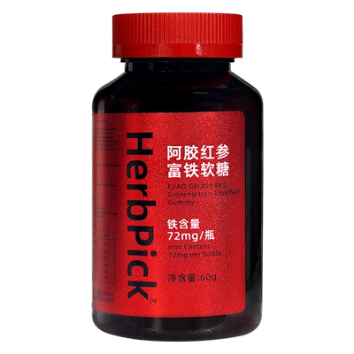 单瓶拍3件 88vip券后21.8/3瓶 【页面价117-80淘客卷)-14.1(超级立减)】*88vip 95折 精选阿胶、红参与富铁成分,科学配比助力补充铁元素,适合女性及孕期人群日常营养所需。软糖口感Q弹,便于携带与食用,轻松满足每日铁摄入需求。HerbPick品牌源自安徽滁州,注重原料品质与配方温和性,为易缺铁人群提供便捷的营养补充方式。