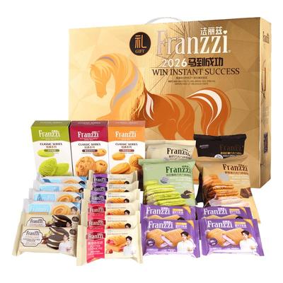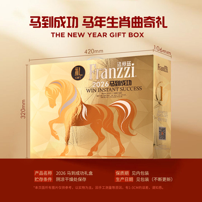 法丽兹马年生肖曲奇礼盒,巧克力味夹心饼干,休闲零食大礼包,春节送人佳选,寓意吉祥,口感香脆美味,礼盒装方便携带,适合走亲访友!