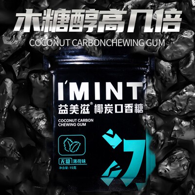 无糖椰炭口香糖,益美滋口气清新神器!含椰碳+木糖醇,0糖0卡,健康又提神!清爽一整天!