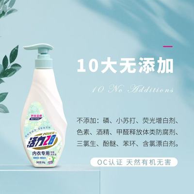 活力28山茶花洗衣液,专为内衣裤定制!温和抑菌,轻松去除血渍异味,呵护私密健康~天然山茶花成分,持久留香,洗后衣物柔软清新,安心看得见!