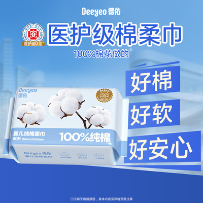 德佑婴儿纯棉柔巾,医护级婴儿级双认证,10o%新疆棉,反复揉搓,不易掉毛絮。百分百纯棉,棉片轻柔细腻,干湿两用,快速吸水不易破。清洁肌肤更彻底~~