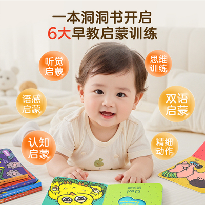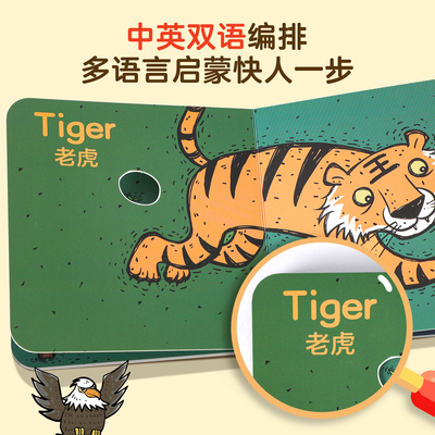 淘金币抵0.99,到手5本仅11.8元!!猜猜我是谁双语洞洞书认知启蒙书脑洞大开创意书籍绘本0-3岁撕不烂婴儿早教启蒙书儿童立体翻翻书躲猫猫捉迷藏游戏书颜色认知书