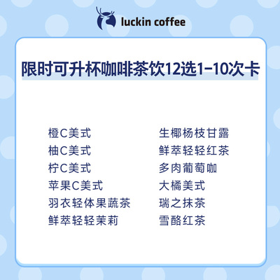 瑞幸限时可升杯咖啡茶饮12选1-10次卡电子