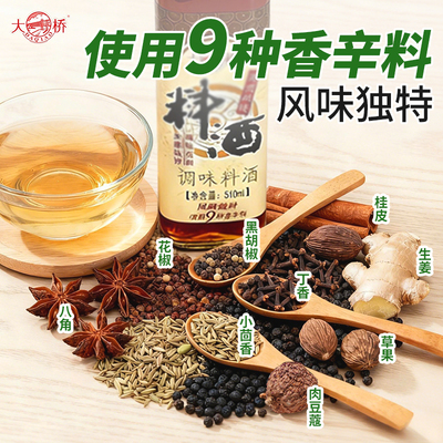 大桥风味料酒510ml*2,炒菜烧菜必备,激发食材原味,醇香浓郁,厨房好帮手,品质之选!