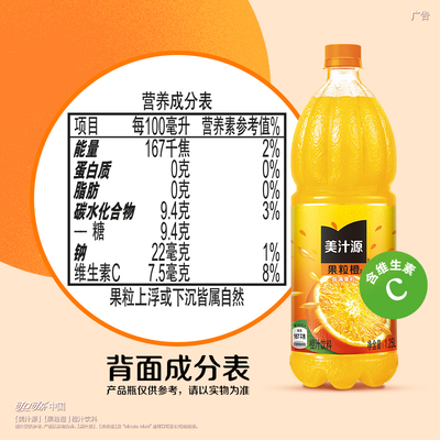 【劵减10元,淘金币减10.17,88VIP立减6.8,到手118.93元1.25L*24瓶,4.9元/瓶】可口可乐美汁源果粒橙,真材实料看得见!1.25L大瓶装,双重果肉嚼着喝,畅享鲜榨口感~,家庭聚会、过年囤货超值之选, 清爽果粒每一口都满足,快分享给爱喝果汁的TA