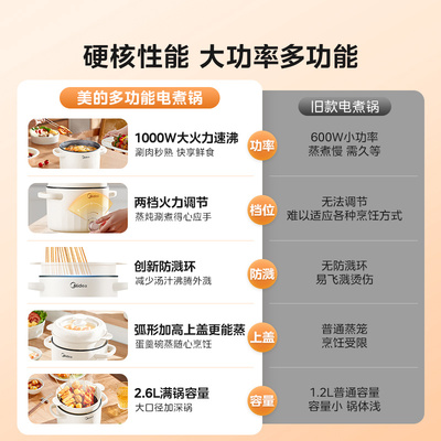 美的电火锅电热锅,家用多功能学生宿舍小电锅炒锅煎炒煮蒸锅电煮锅